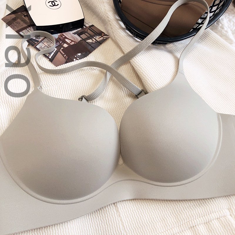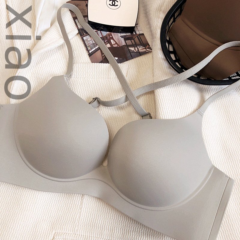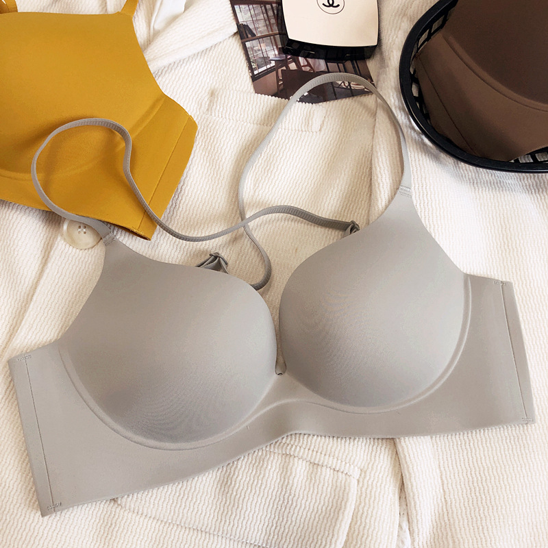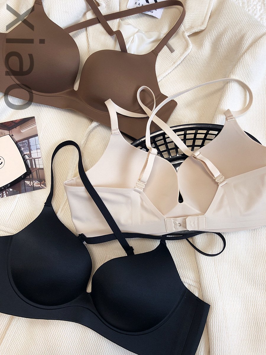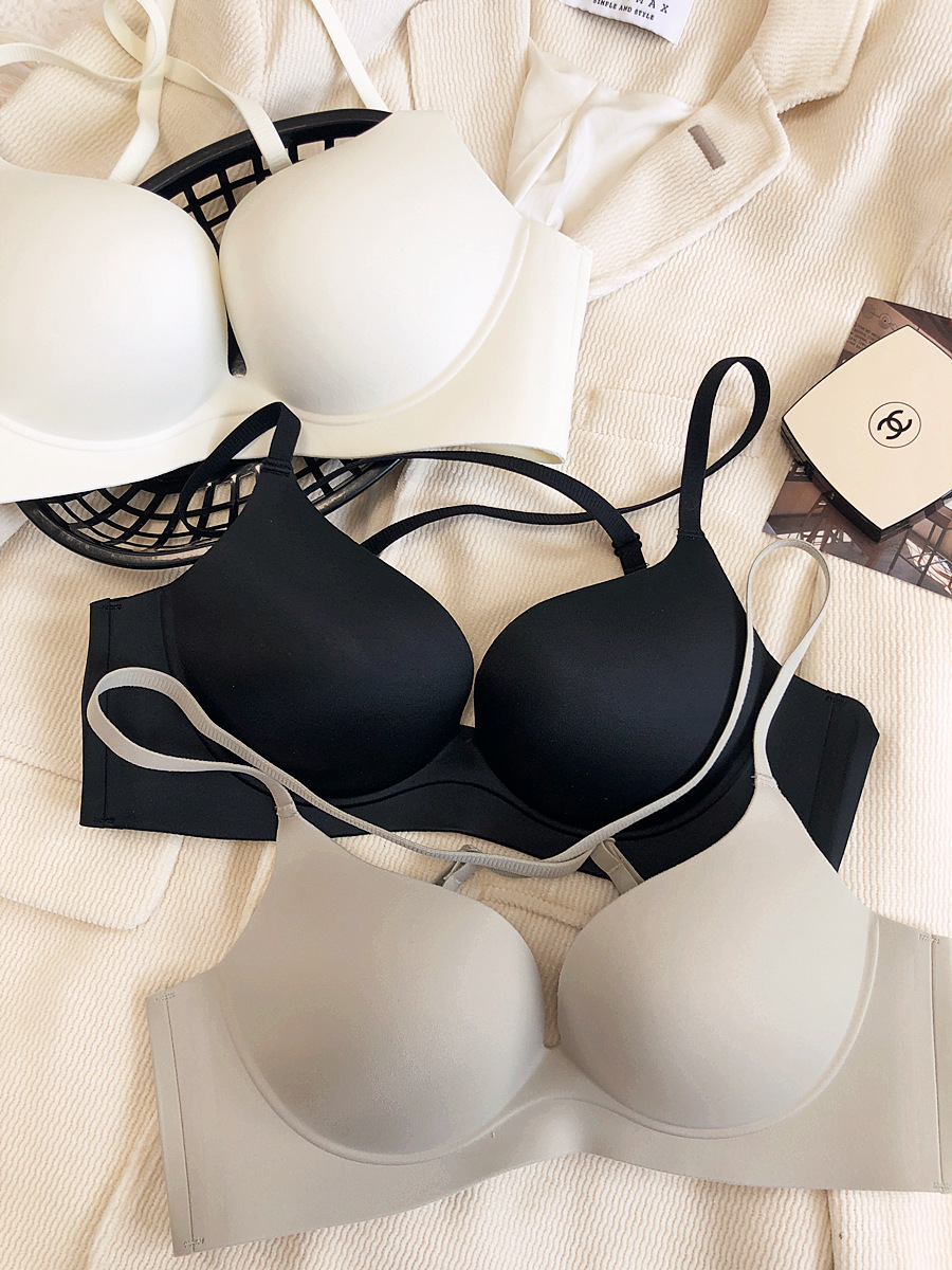 Non-marking beauty back gathering glossy bra soft steel ring on thin under thick underwear fortable soft lingerie